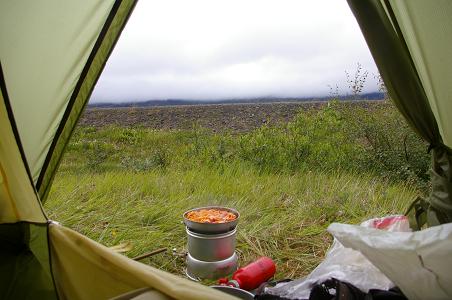 Die Strecke ist genauso schön und beeindruckend wie gestern. Heute macht sie deutlich mehr Spaß, weil es im Gegensatz zu gestern fast nur bergab geht. Gestern musste ich deutlich mehr bergauf fahren, was ganz ordentlich in die Knochen gegangen ist. Die Fahrt heute ist richtig entspannend. Am Abend komme ich wieder auf dem Campingplatz in Reykjahlið an und finde dort in dem Küchenzelt meinen Teller wieder den ich hier bei meinem letzten Besuch vergessen habe. Den Mann, der ihn gerade in Gebrauch hat, lasse ich noch aufessen bevor ich ihm den Teller wegnehme. Es gibt wirklich kein Teil meiner Ausrüstung auf das ich verzichten möchte und der Teller hat mir in den letzten Tagen sehr gefehlt.